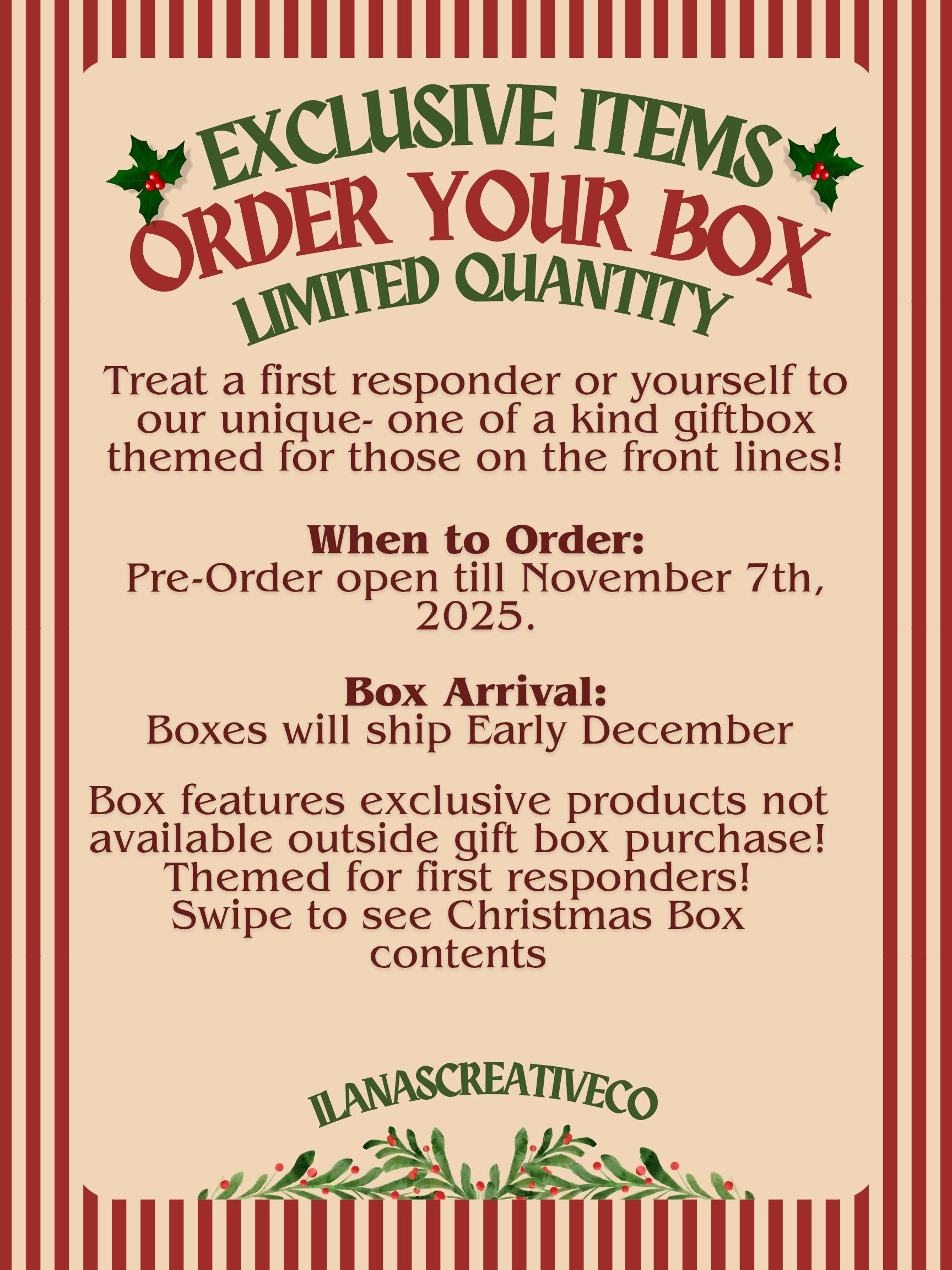 The first of its kind - a curated holiday gift box designed for first responders! Filled with exclusive items, limited quantity available